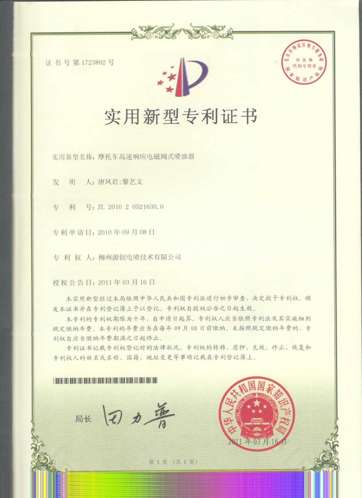 柳州源创电喷技术有限公司,是研发和制造汽油机汽车、摩托车喷油器、甲醇喷射器及柴油车后处理SCR系统尿素喷射器等产品的国家级高新技术企业。 中国喷油器国家标准的起草单位,公司起草的《汽油机电磁阀式喷油器总成 技术条件》及《汽油机电磁阀式喷油器总成 实验方法》两项国家标准已于2011年实施。 拥有系列喷油器发明专利,是中国唯一能做喷油器OEM配套的公司。 通过TUV公司的TS/16949质量体系审核。